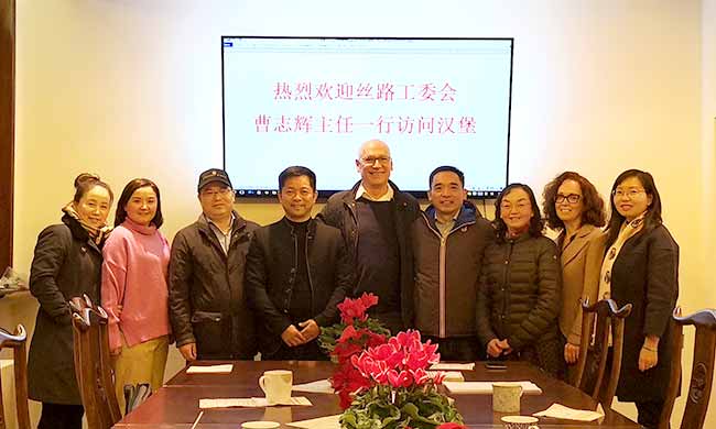 On 17th, Cao talked with Federke,Wen Zhenjiang, chairman of the China-Germany Economic and Cultural Exchange Association in Hamburg Yuyuan, Li Yuting, associate chairman of the Association, and Li Xia, National Registered Health-Illness Care Expert. The talk was fruitful. To reduce the shortage of of nursing staff in German hospitals and nursing homes, two sides proposed to foster nursing staff in China with German nursing care concepts and training materials first, and then export them to Germany. The two sides discussed the integration of China-German medical pension resources to set up a professional training center in Yuyuan. Under these efforts, both China and Germany medical and pension industry will witness sound development.